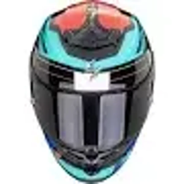 El Scorpion EXO-R1 Evo Air es el casco full-face de alto rendimiento que lleva la tecnología de MotoGP y World Superbike al alcance de todos los moteros. Evolución del legendario EXO-R1 Air, esta versión Evo incorpora mejoras en aerodinámica, peso y seguridad, con un diseño explosivo en negro brillante/perla con gráficos turquesa, azul y rojo que destacan en pista o carretera.